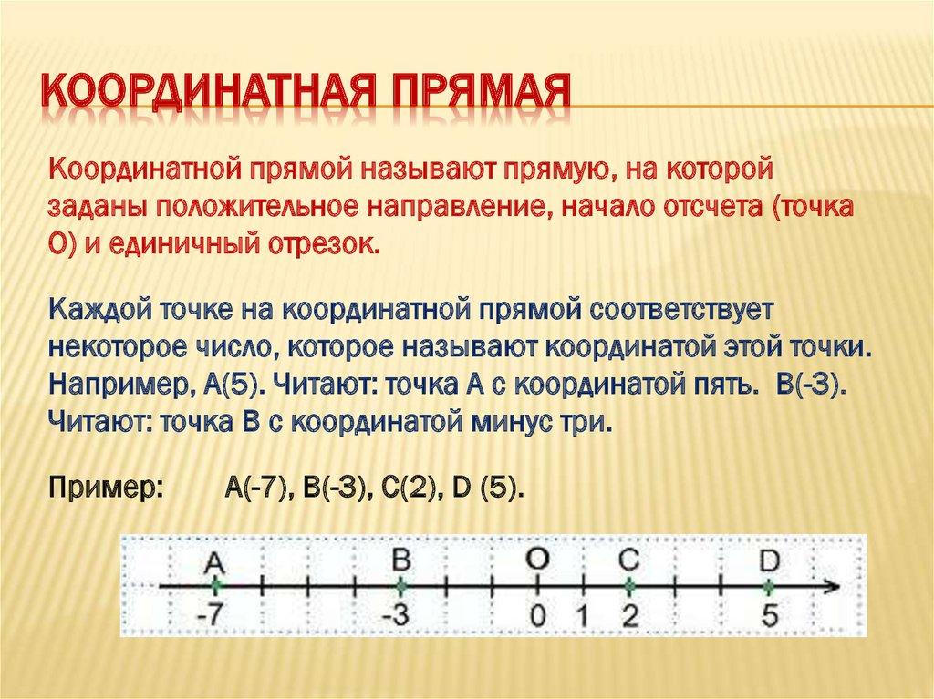 КООРДИНАТНАЯ ПРЯМАЯ – ЭТО ПРЯМАЯ СУКАЗАННЫМИ НА НЕЙ НАЧАЛОМ ОТСЧЕТА,
