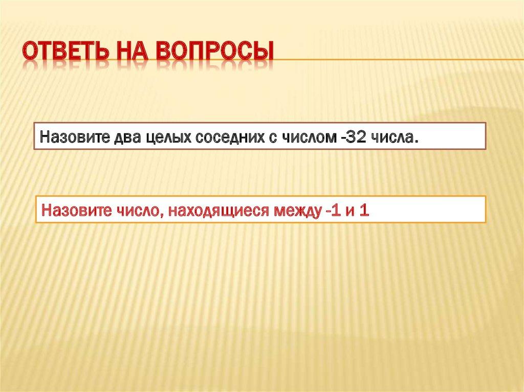 ОТВЕТЬ НА ВОПРОСЫНазовите два целых соседних с числом -32 числа.