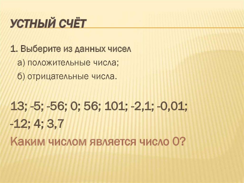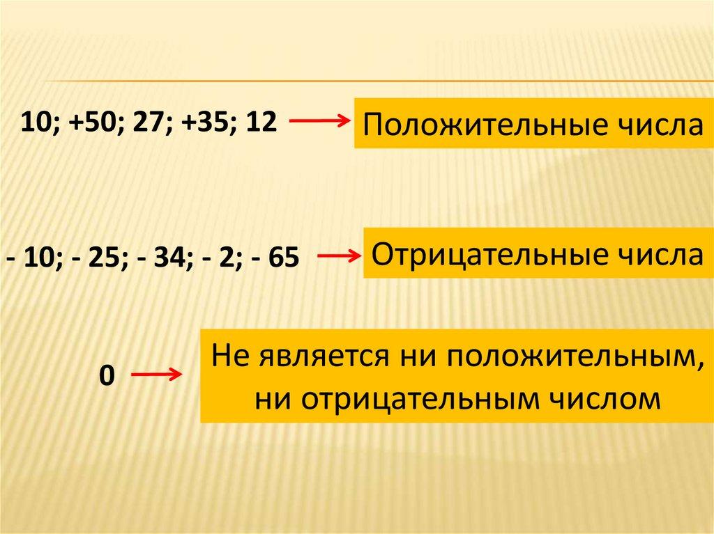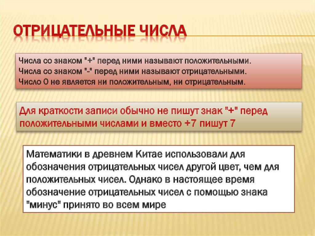 ОТРИЦАТЕЛЬНЫЕ ЧИСЛАЧисла со знаком "+" перед ними называют положительными.