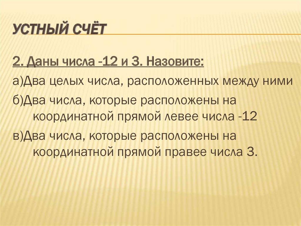 УСТНЫЙ СЧЁТ2. Даны числа -12 и 3. Назовите: