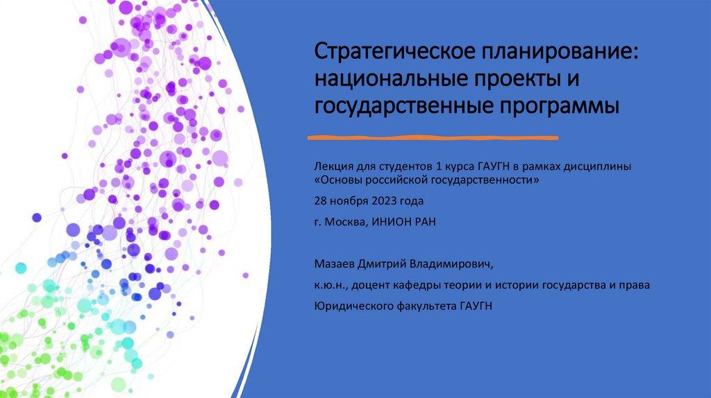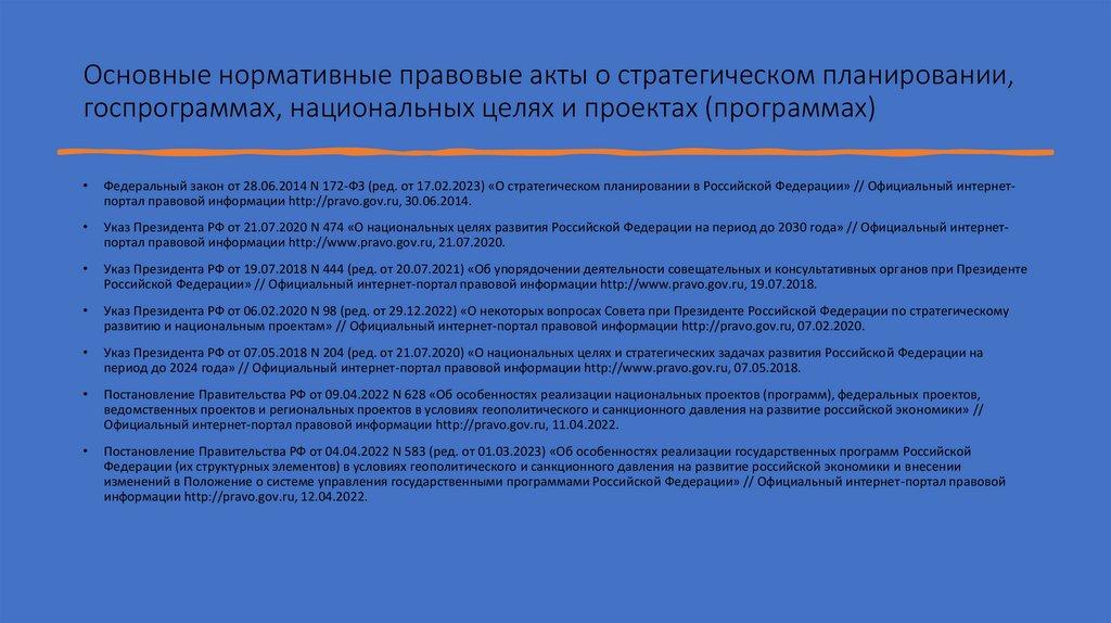 Основные нормативные правовые акты о стратегическом планировании,госпрограммах, национальных целях и проектах (программах)
