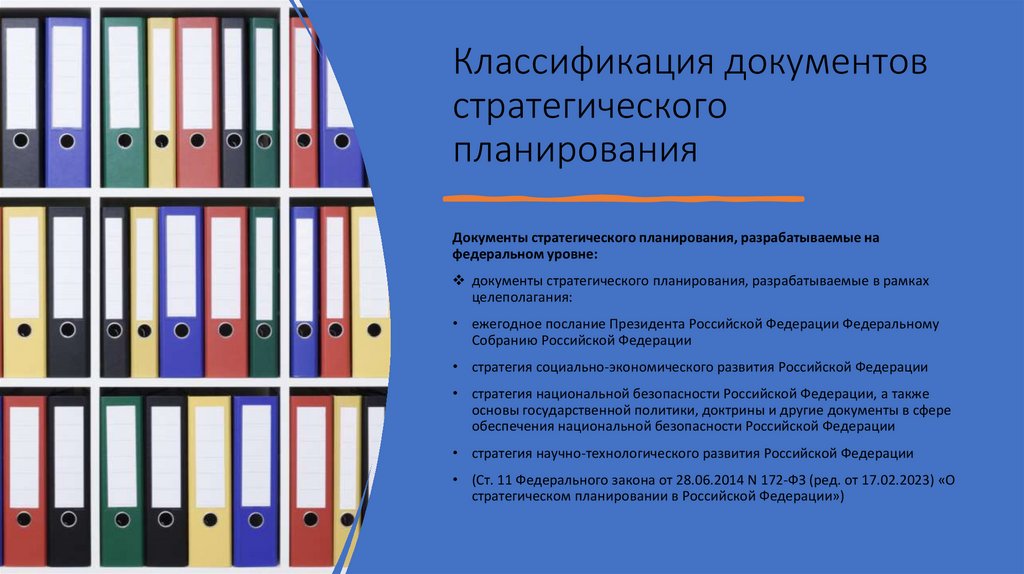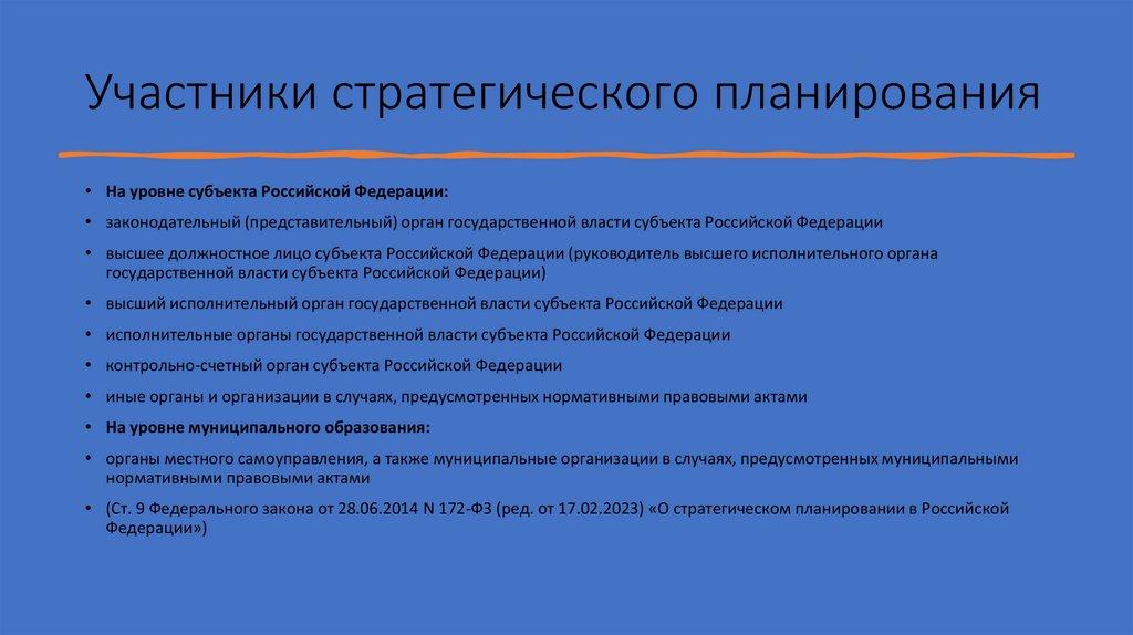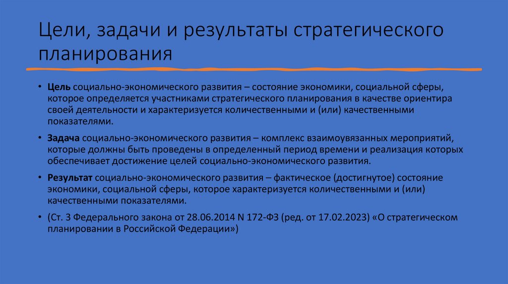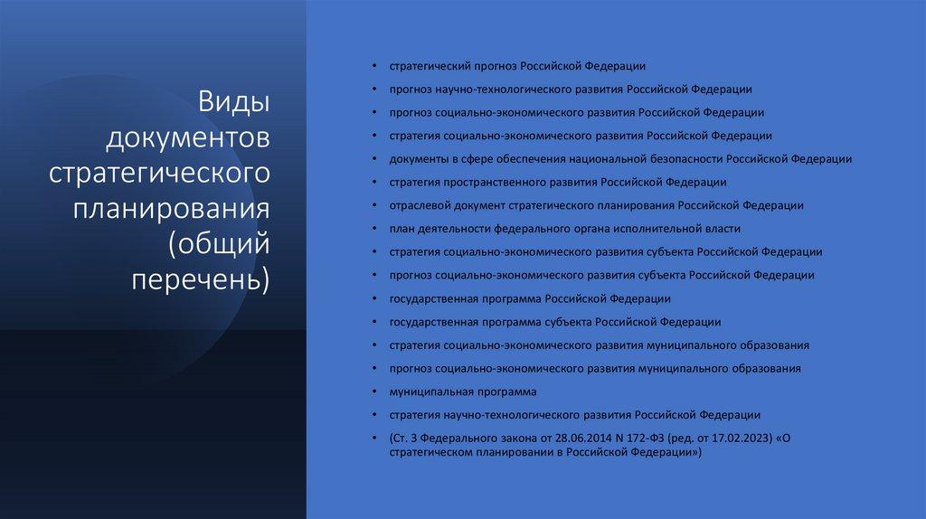 • (Ст. 3 Федерального закона от 28.06.2014 N 172-ФЗ (ред. от 17.02.2023) «О стратегическом