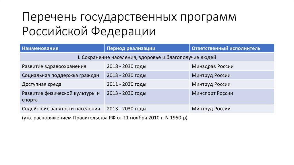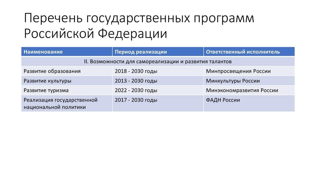 Направления национальных проектов (программ) до 2030 года (утв. Указом Президента