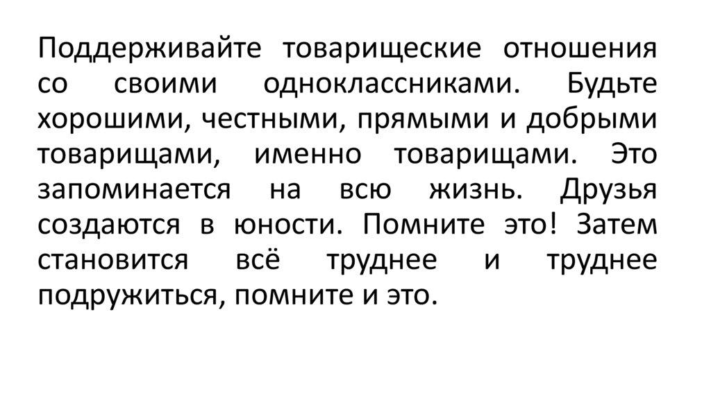 Поддерживайте товарищеские отношениясо своими одноклассниками. Будьте