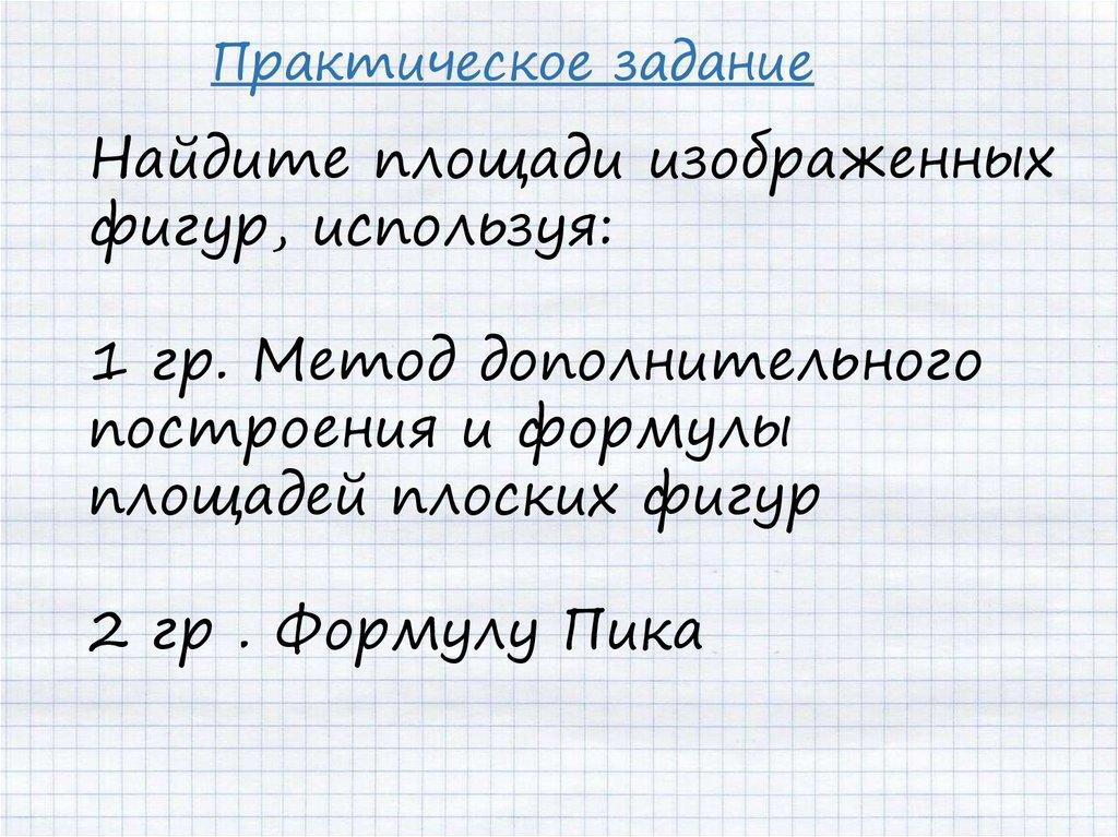Практическое заданиеНайдите площади изображенных