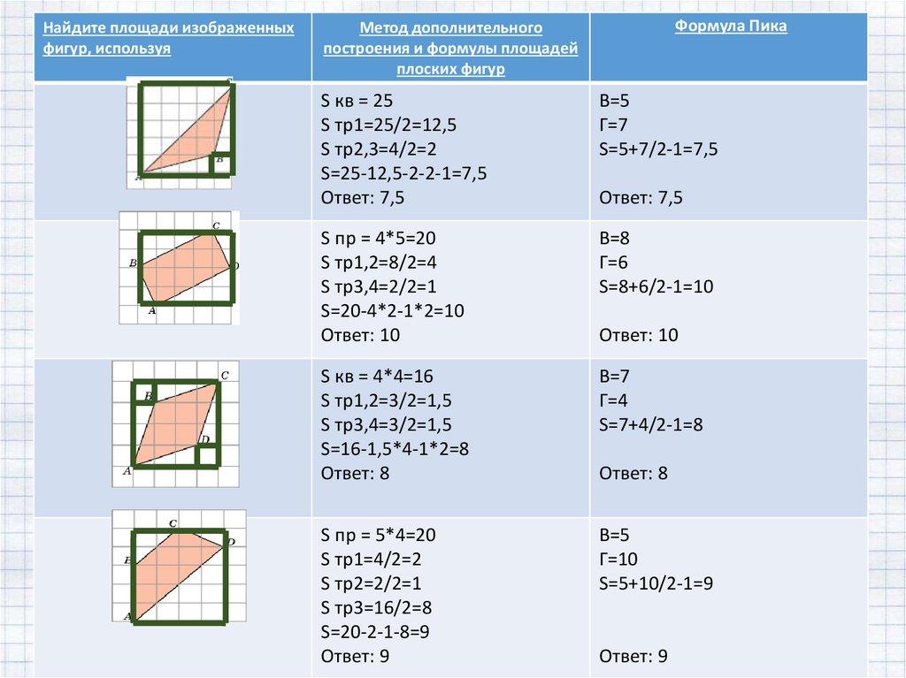 построения и формулы площадей