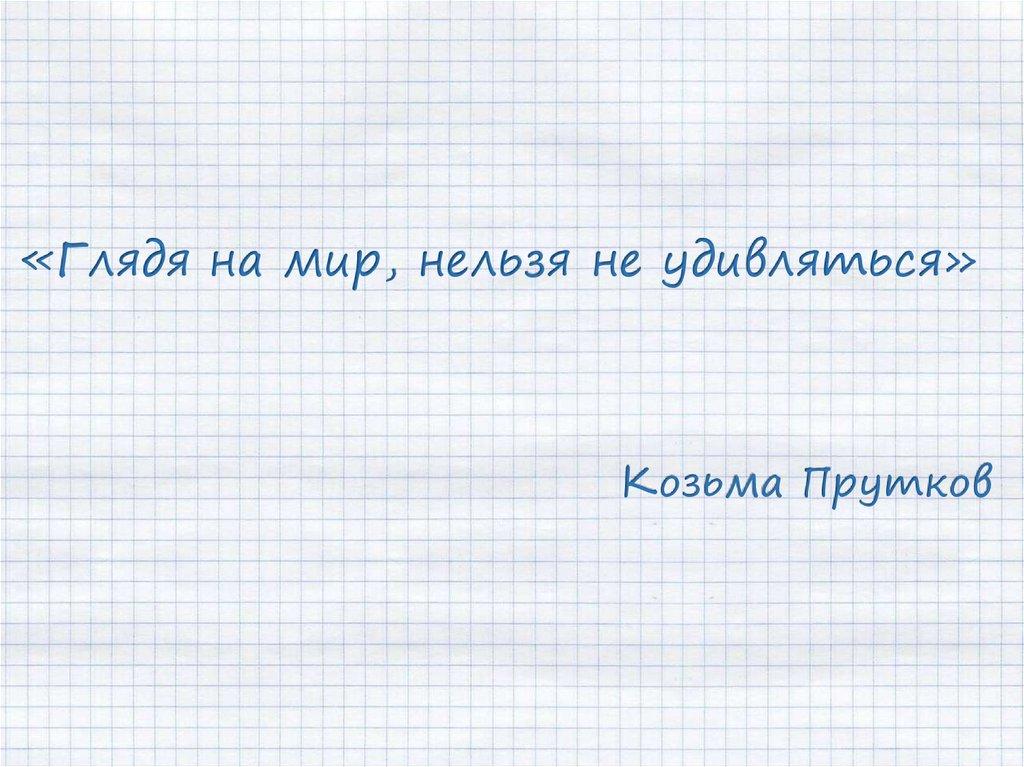 «Глядя на мир, нельзя не удивляться»Козьма Прутков