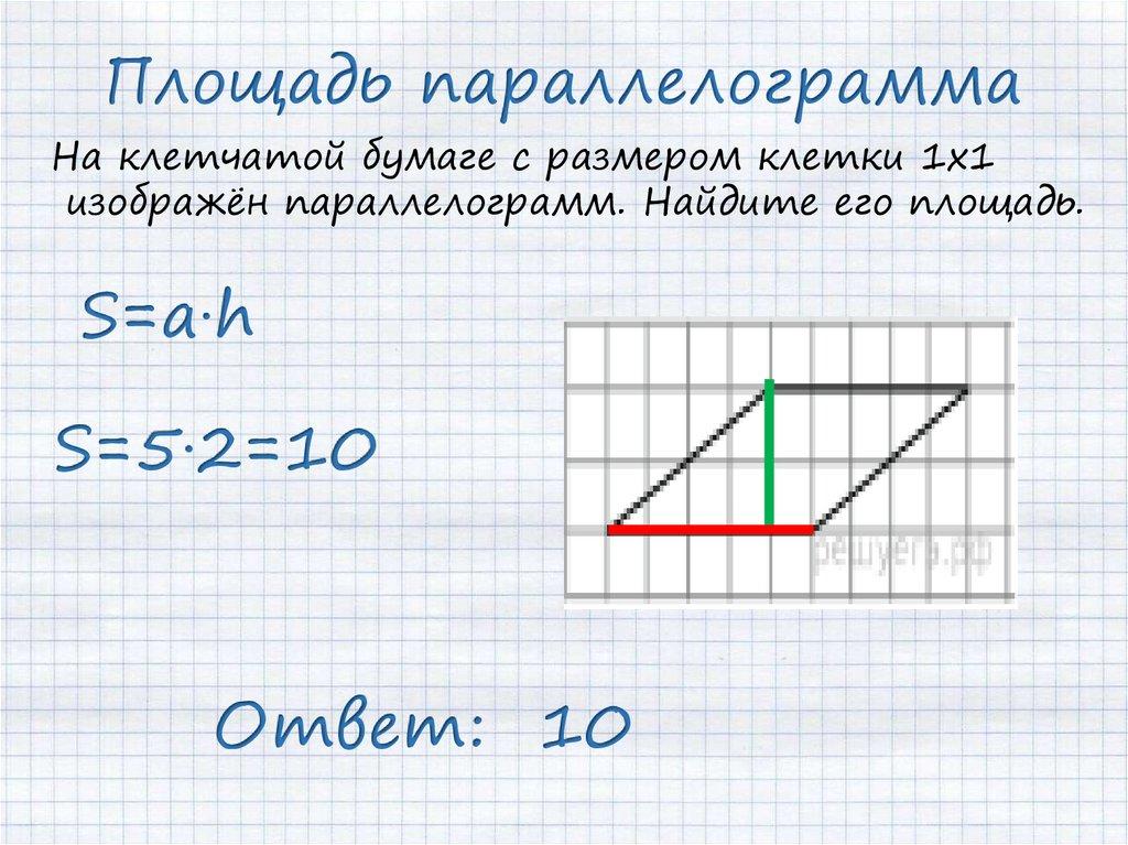 Площадь параллелограммаНа клетчатой бумаге с размером клетки 1х1