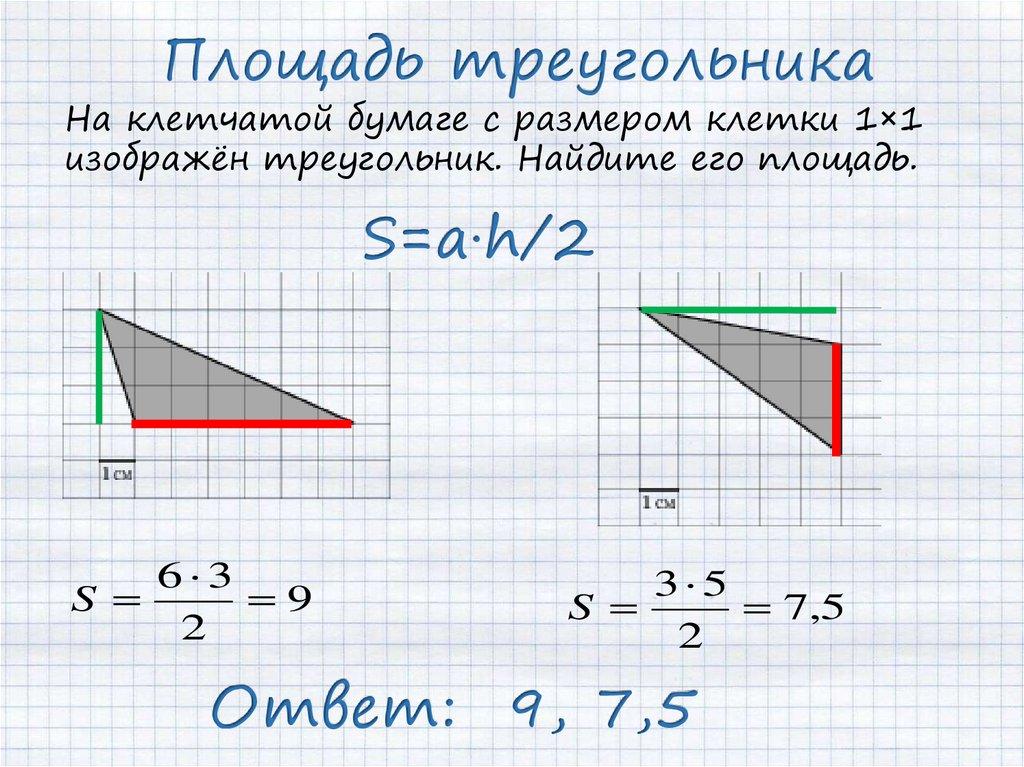 Площадь треугольникаНа клетчатой бумаге с размером клетки 1×1