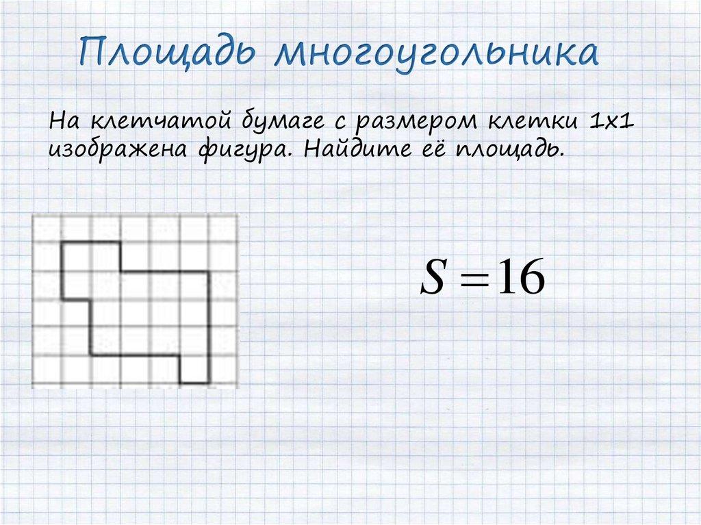 Площадь многоугольникаНа клетчатой бумаге с размером клетки 1х1