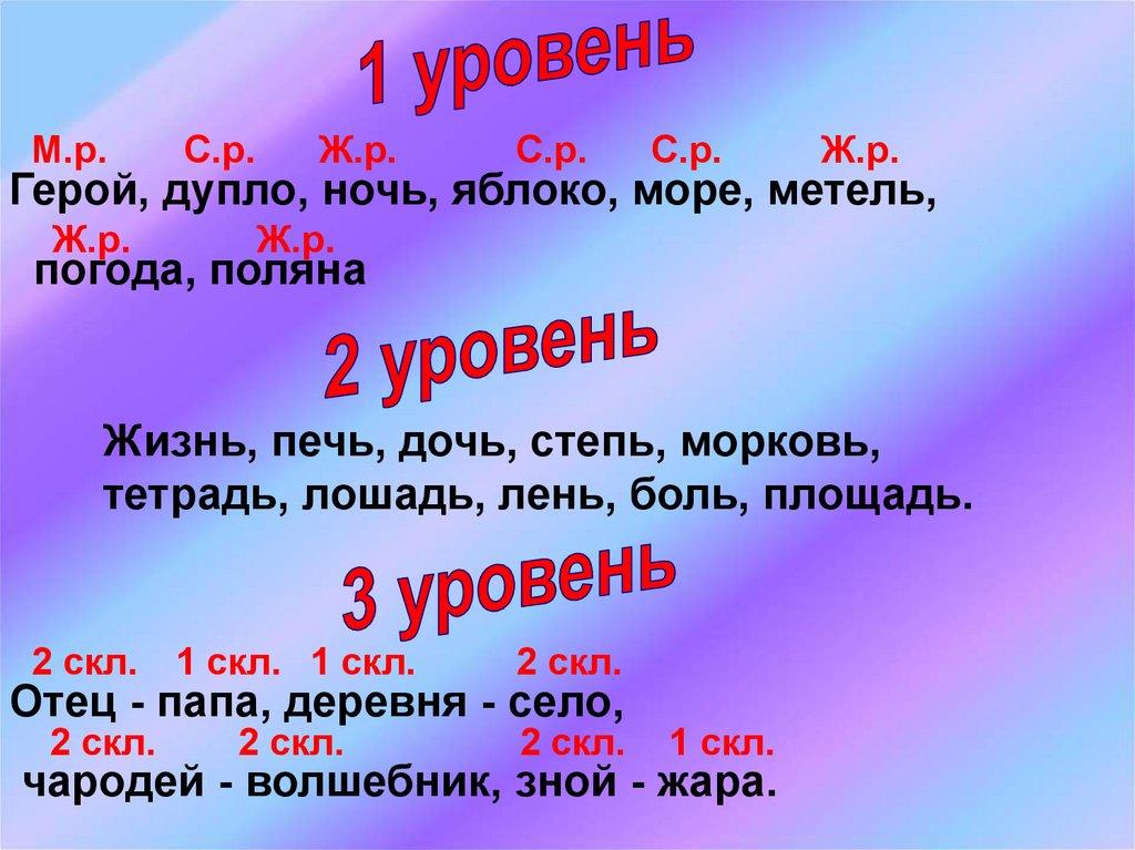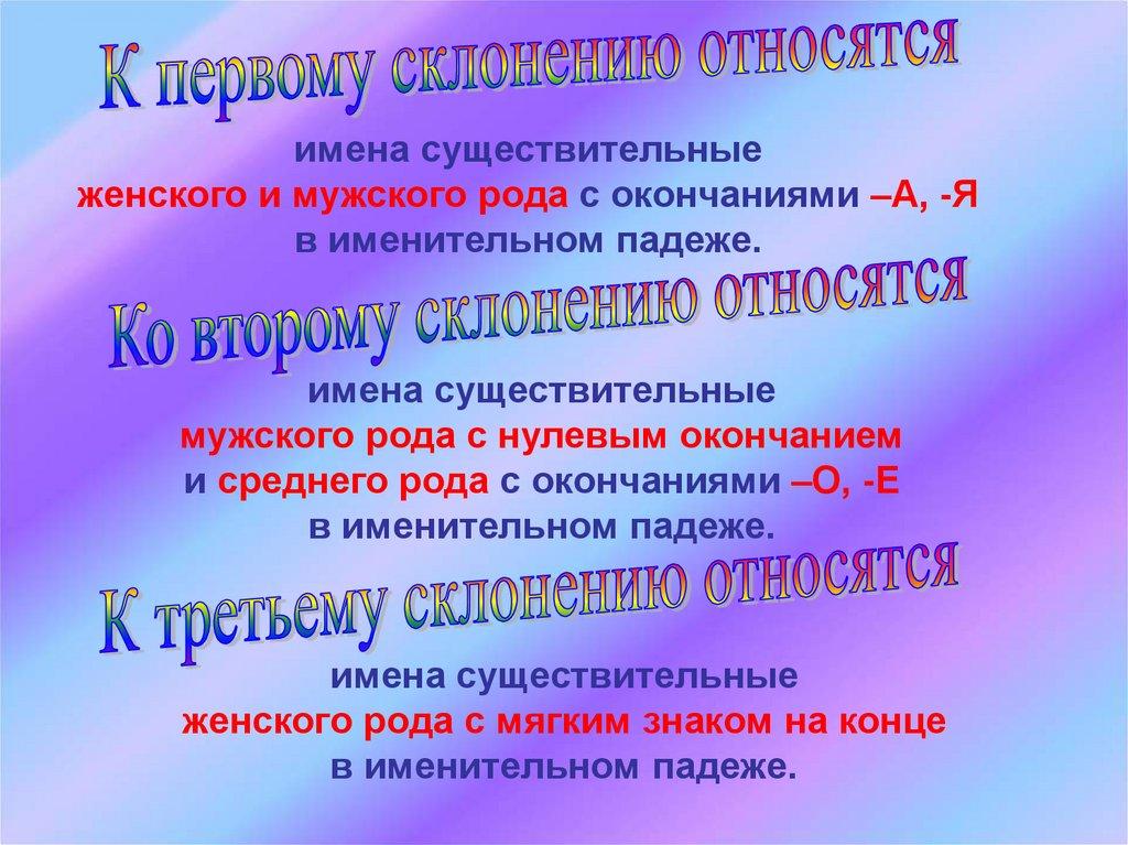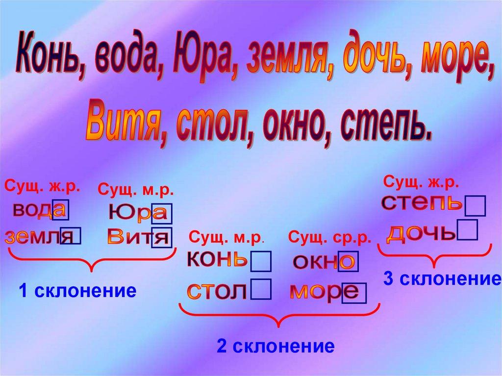 3. Три склонения имён существительных