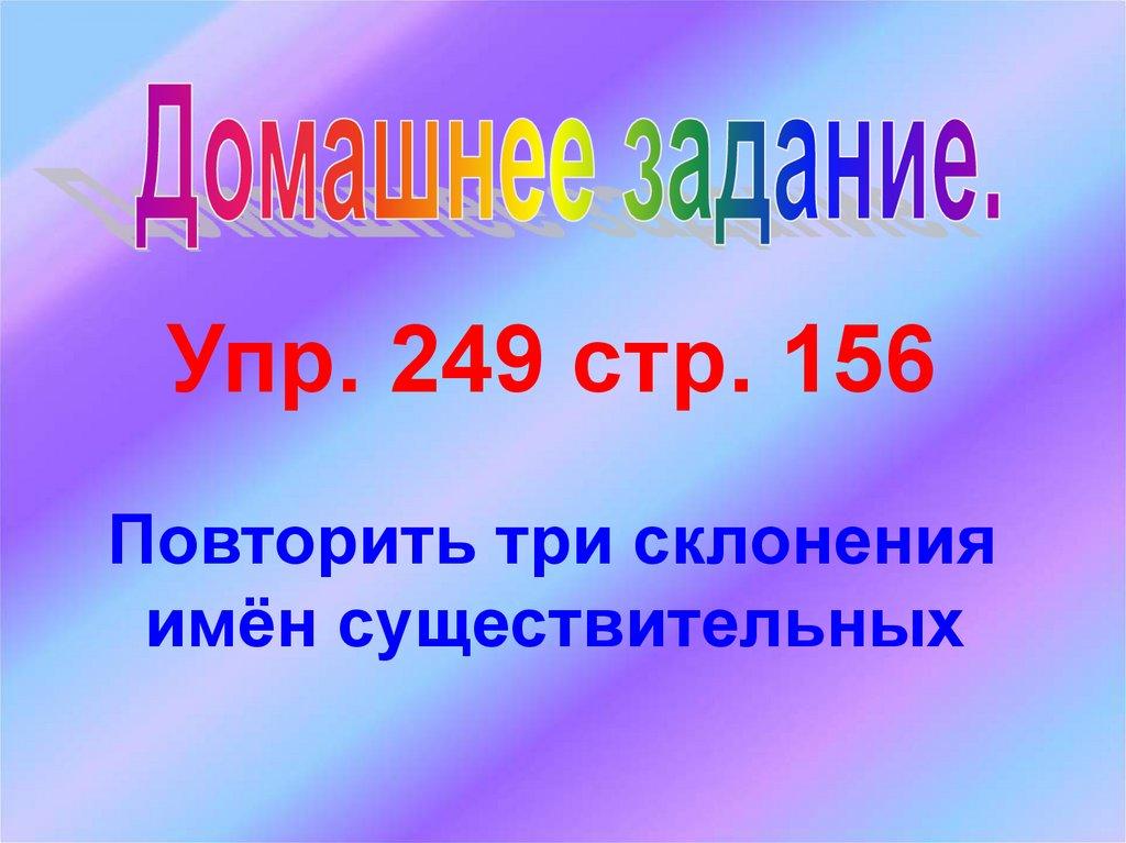 Упр. 249 стр. 156Повторить три склонения