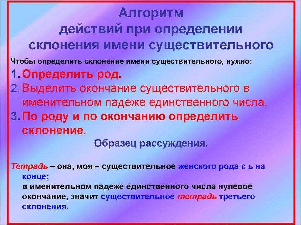 Чтобы определить склонение имени существительного, нужно: