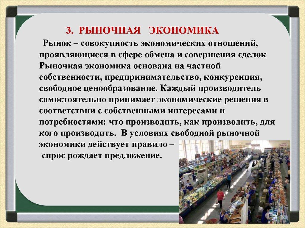 3. РЫНОЧНАЯ ЭКОНОМИКАРынок – совокупность экономических отношений,