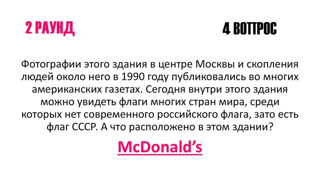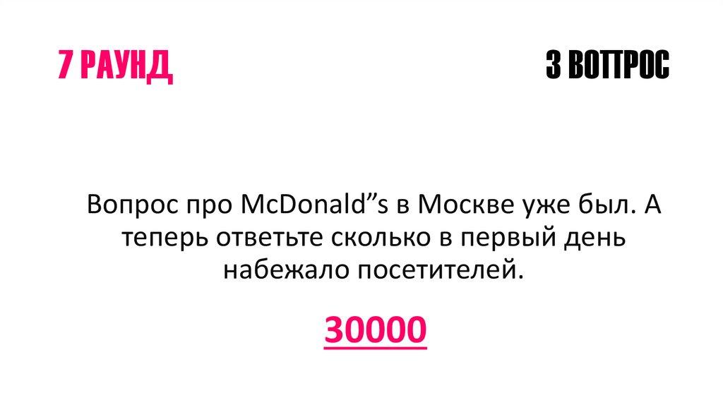 Вопрос про McDonald”s в Москве уже был. А
