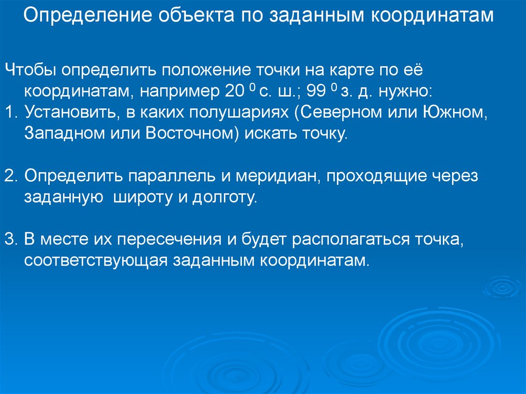 Определение объекта по заданным координатамЧтобы определить положение точки на карте по её