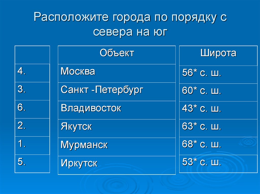 5. Определите долготу городов Нью-Йорк и Вашингтон.