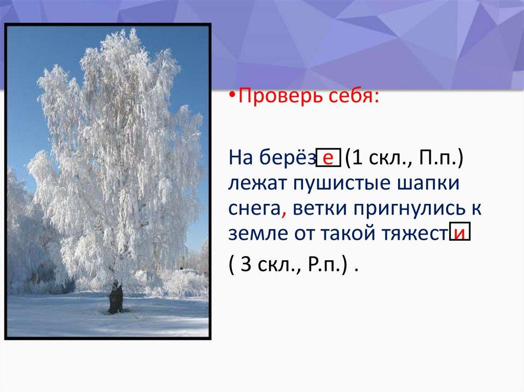 •Проверь себя:На берёз е (1 скл., П.п.)