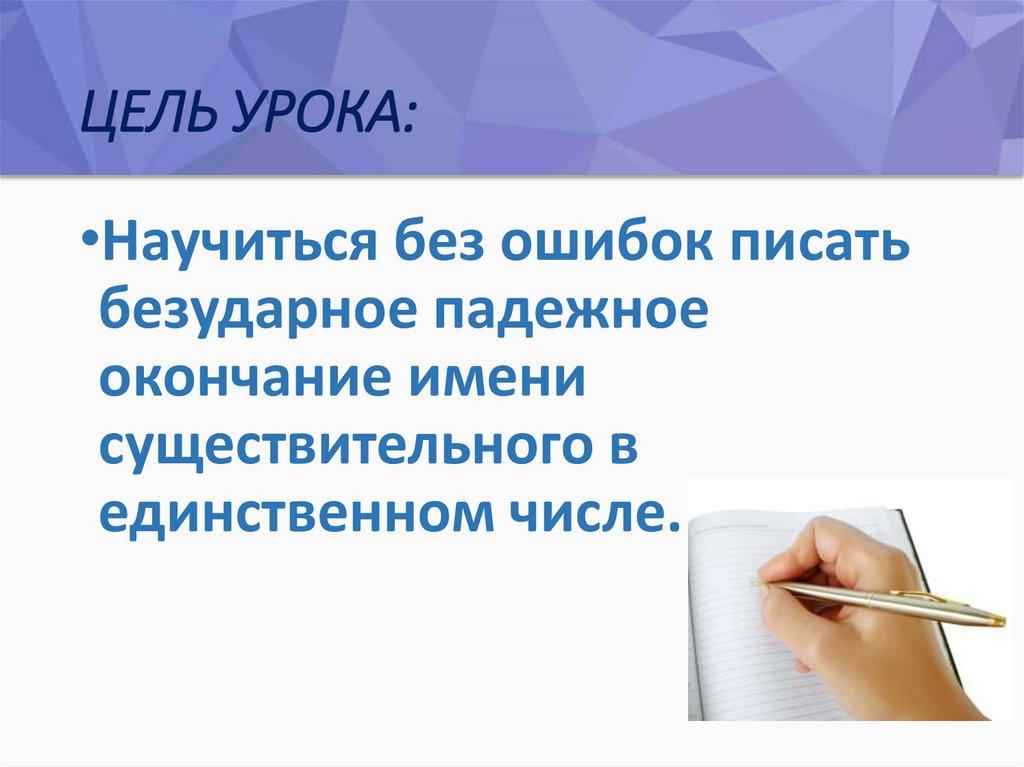 ЦЕЛЬ УРОКА:•Научиться без ошибок писать