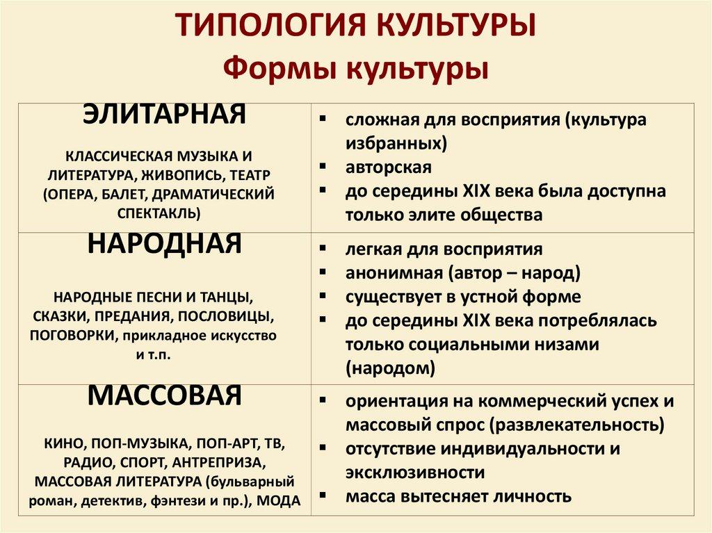 ТИПОЛОГИЯ КУЛЬТУРЫФормы культуры