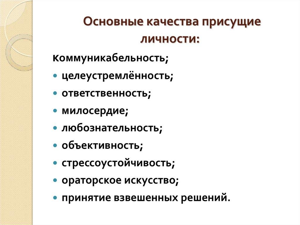 Основные качества присущиеличности: