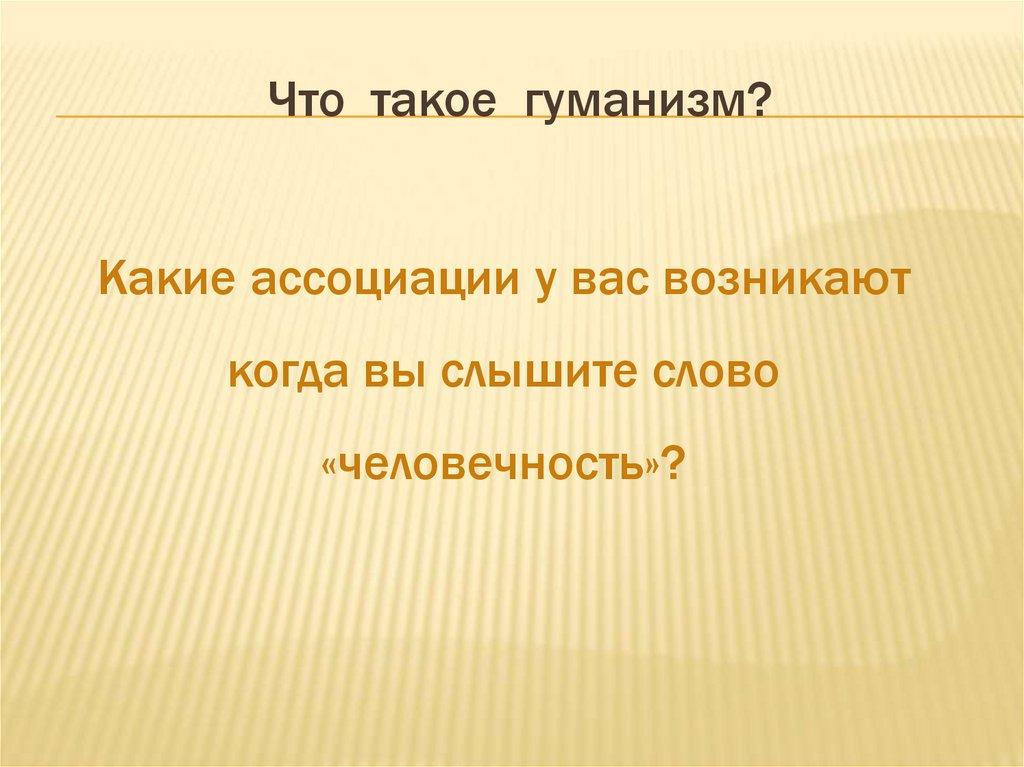 Что такое гуманизм?Какие ассоциации у вас возникают