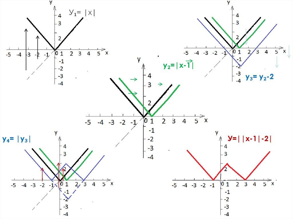 У₁= |х|у₂=|х-1|