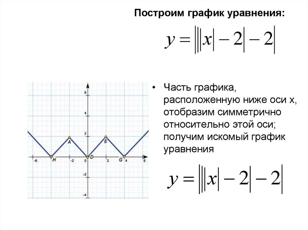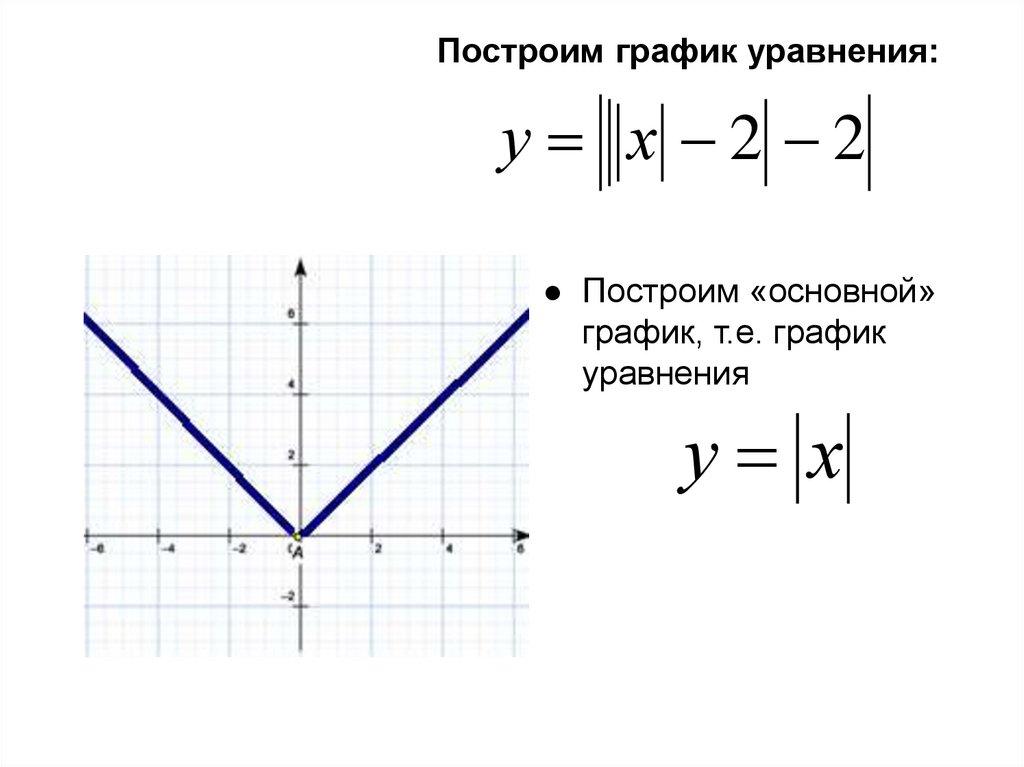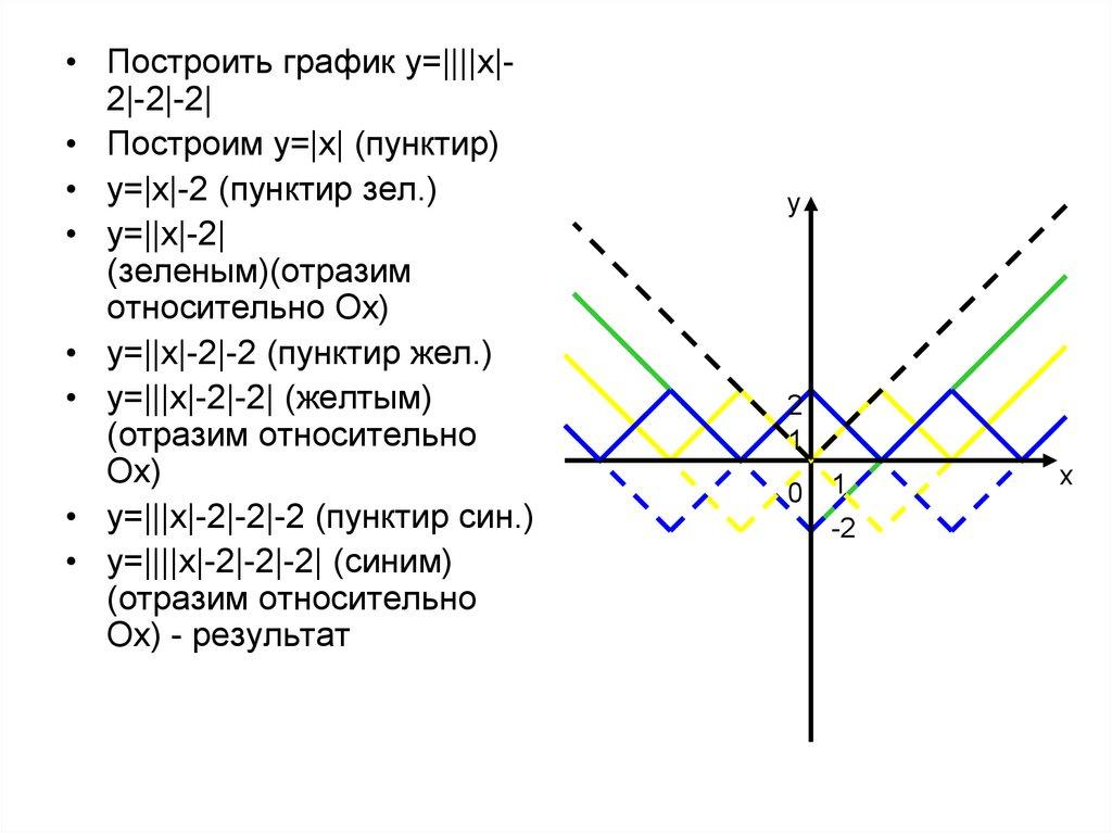 • Построить график y=||||x|2|-2|-2|• Построим y=|x| (пунктир)