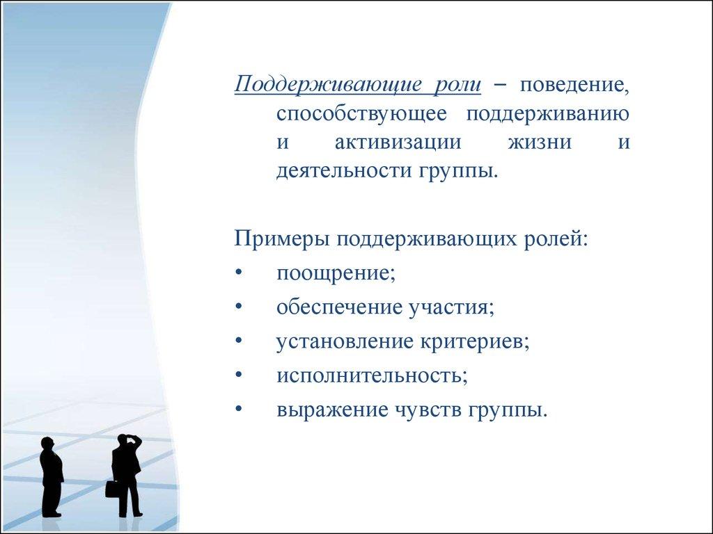 Поддерживающие роли – поведение,способствующее поддерживанию