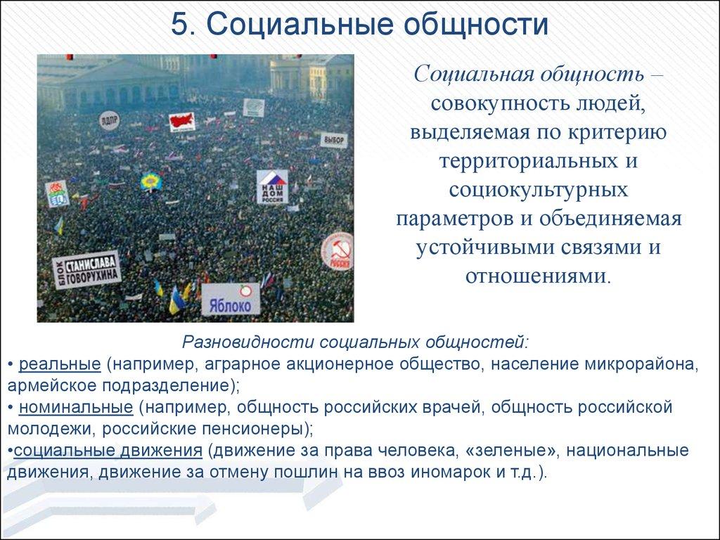 5. Социальные общностиСоциальная общность –