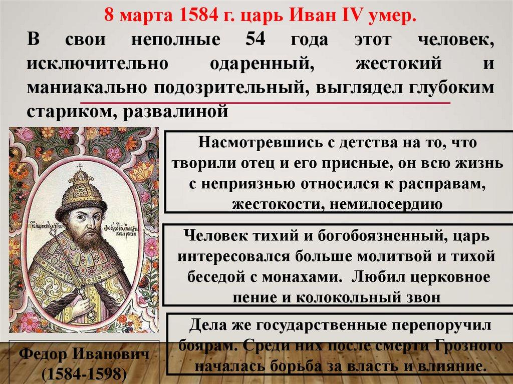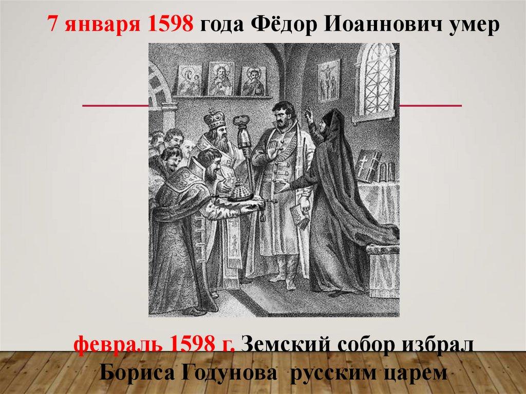 7 января 1598 года Фёдор Иоаннович умерфевраль 1598 г. Земский собор избрал