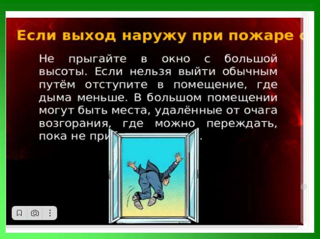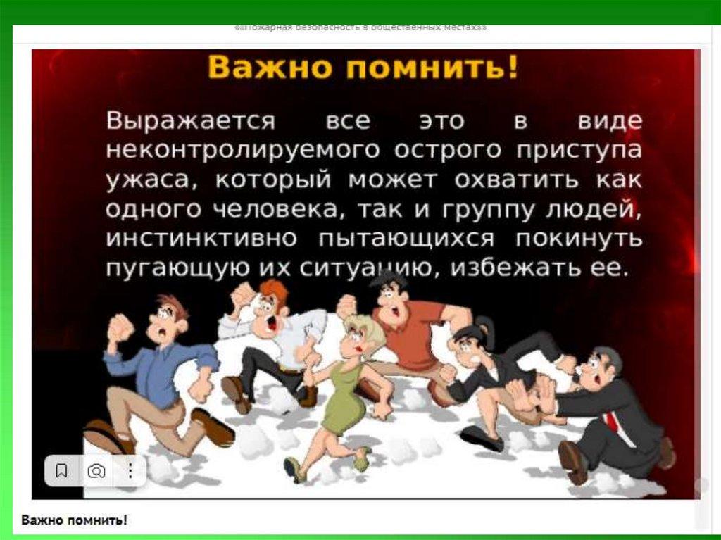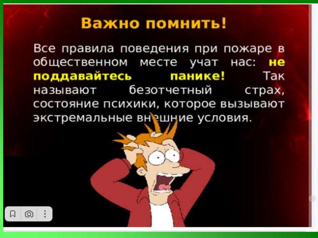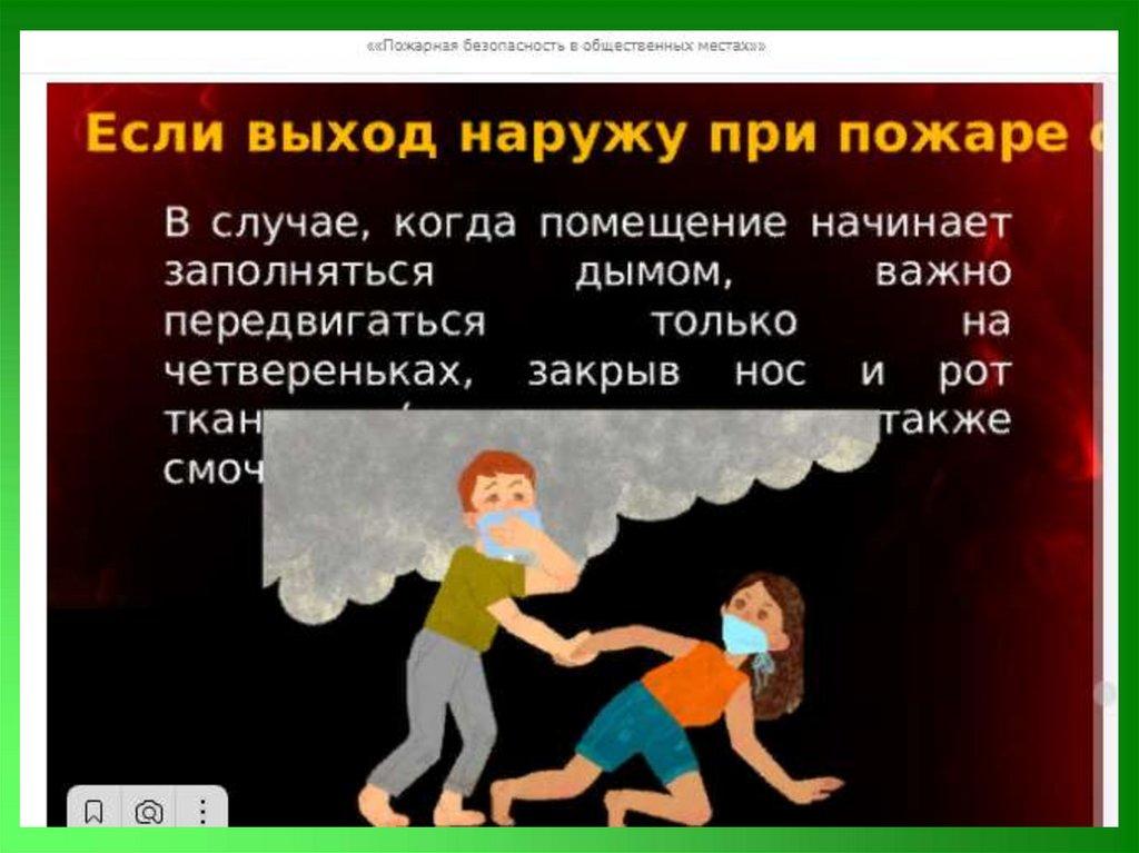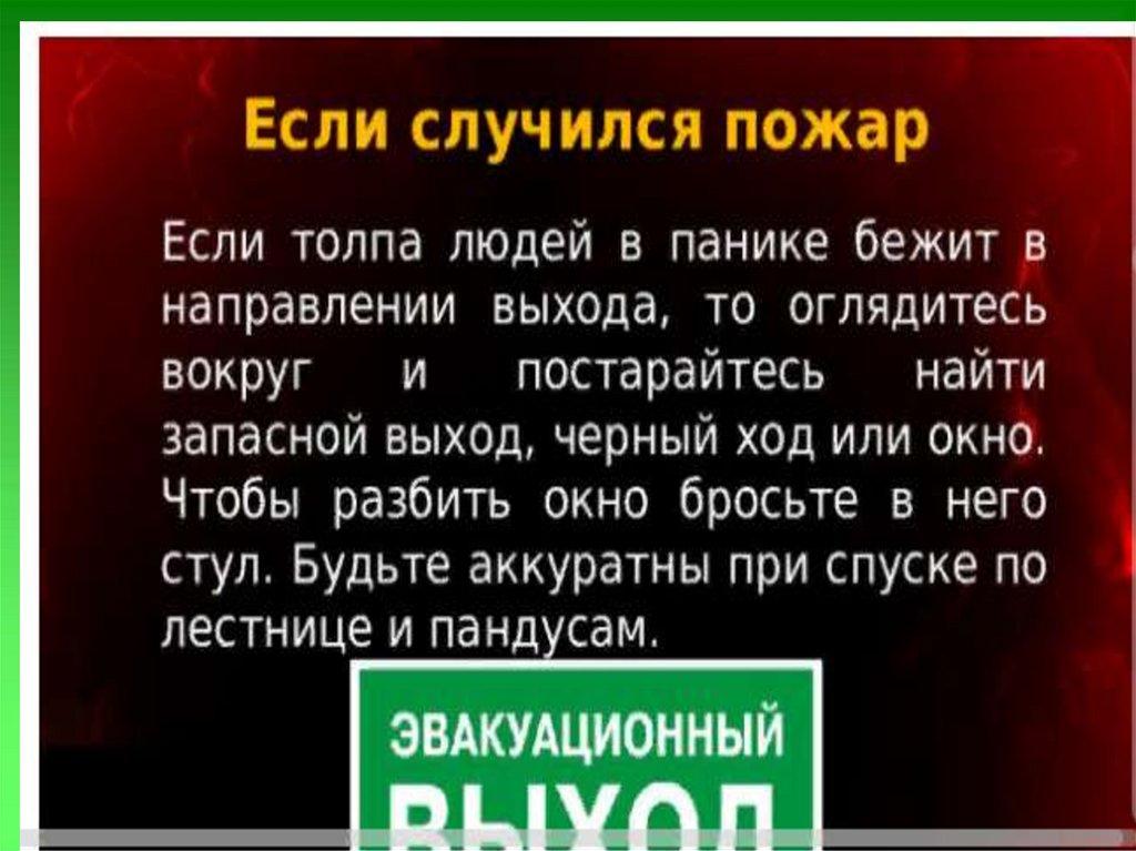 49. Важно помнить: при пожаре в общественных местах: