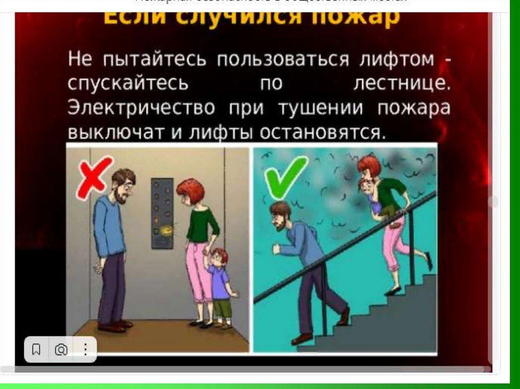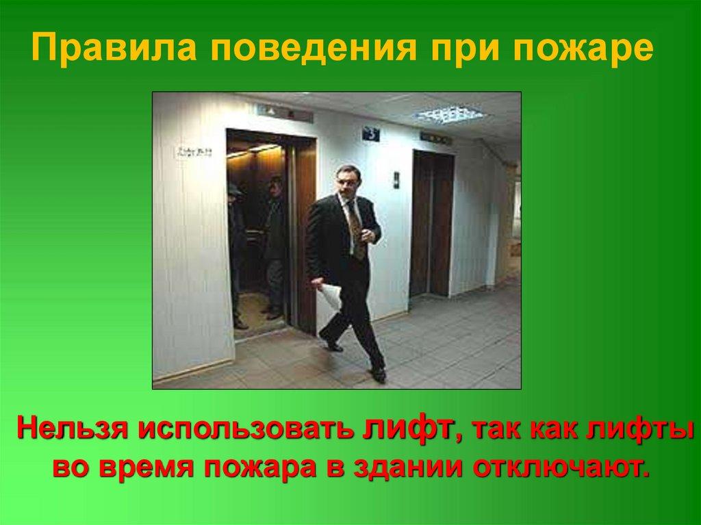 Правила поведения при пожареНельзя использовать лифт, так как лифты
