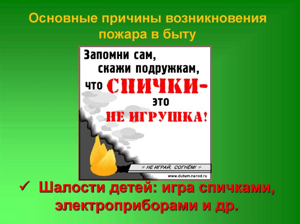 Основные причины возникновенияпожара в быту