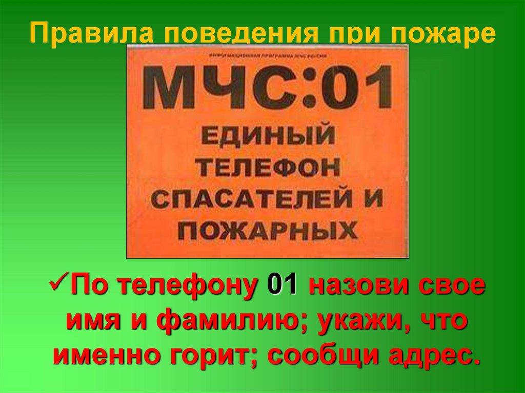 Правила поведения при пожареПо телефону 01 назови свое