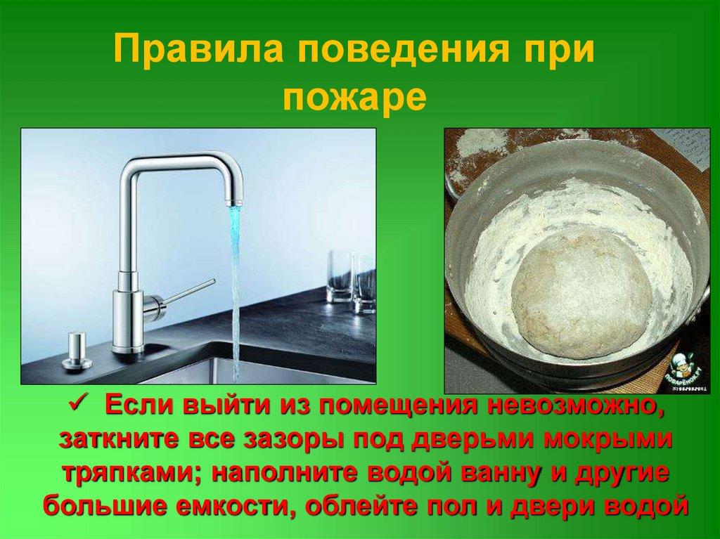 тряпками; наполните водой ванну и другие