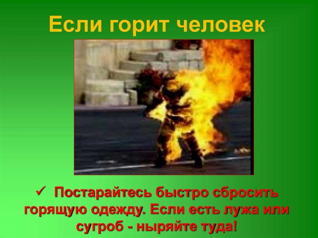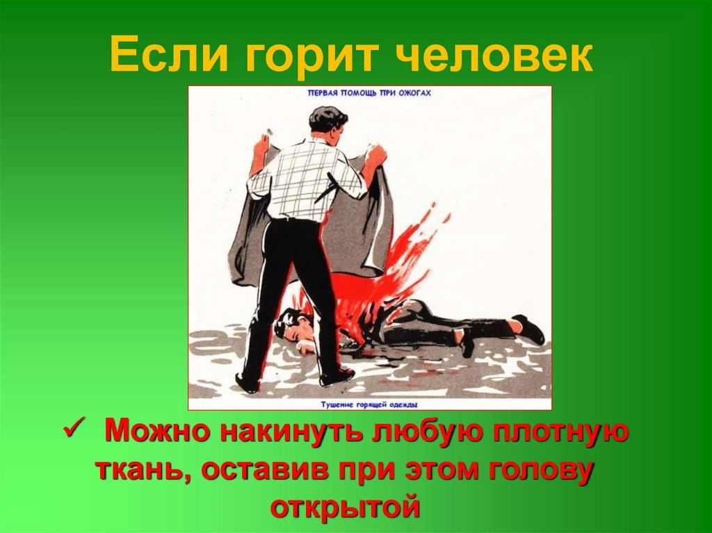 Если горит человекПостарайтесь быстро сбросить