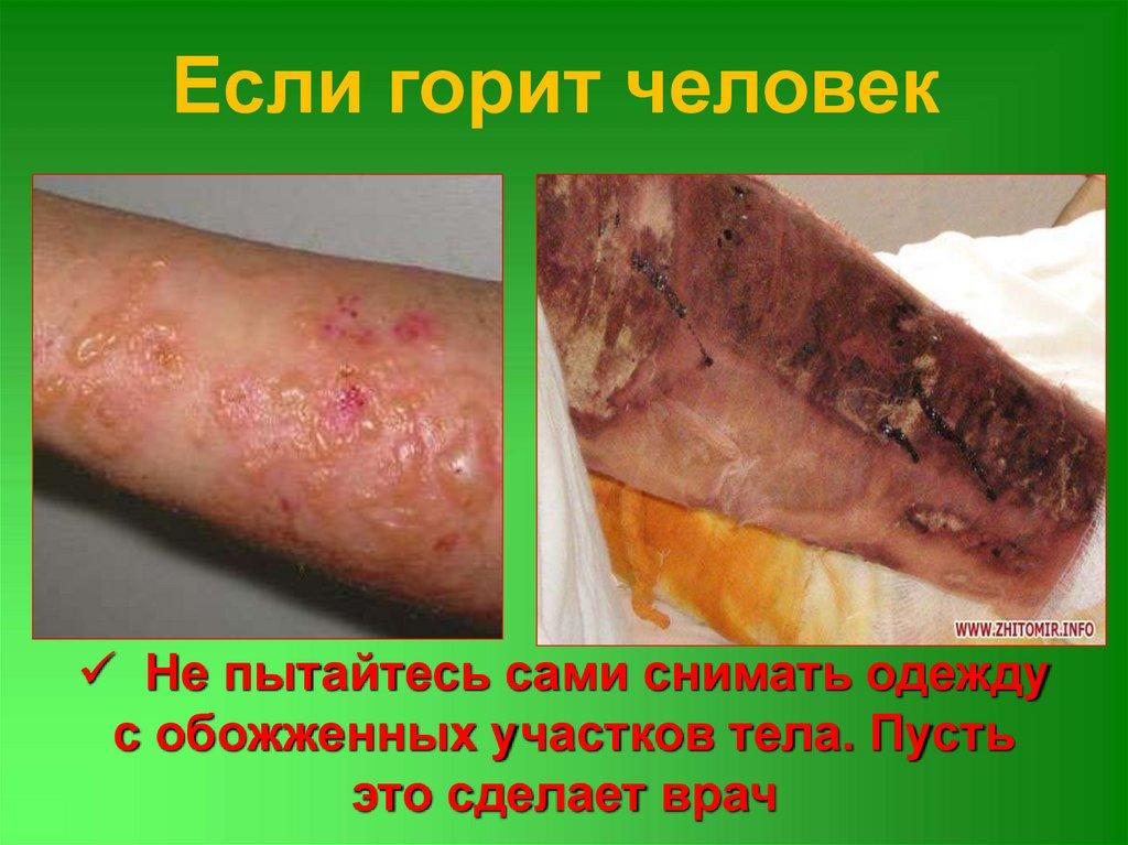 Если горит человекНе пытайтесь сами снимать одежду