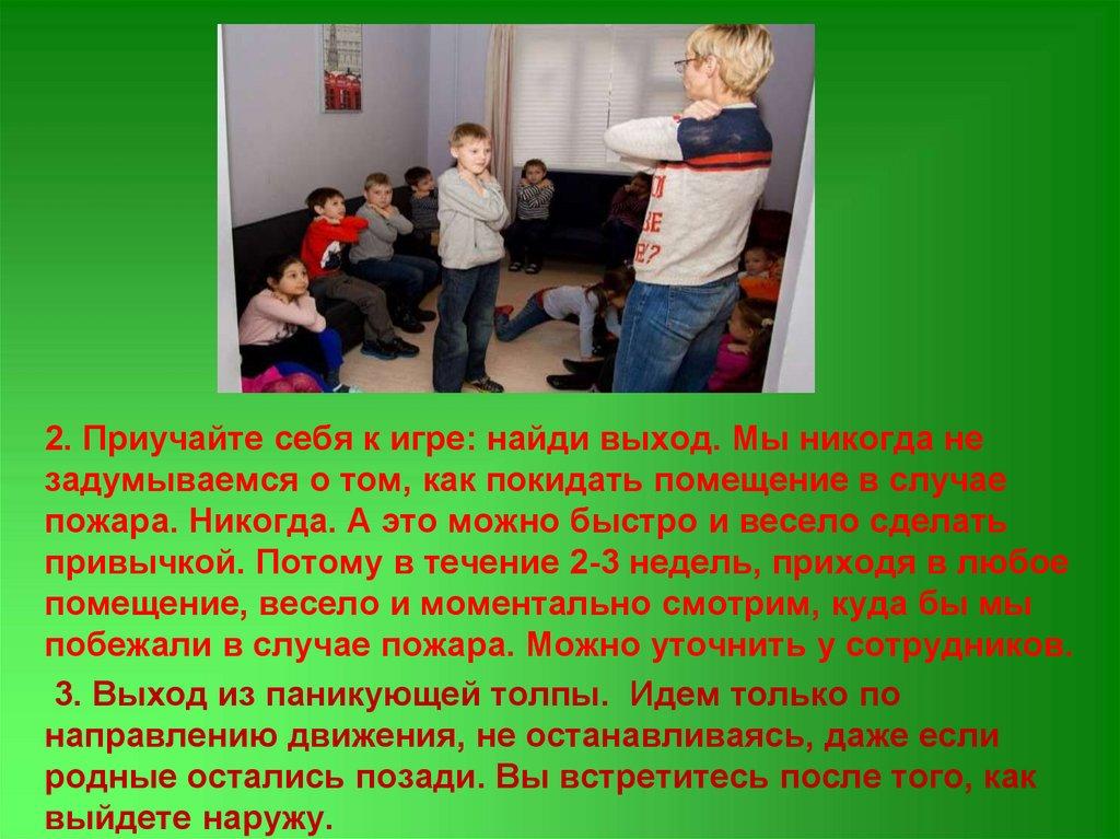 2. Приучайте себя к игре: найди выход. Мы никогда незадумываемся о том, как покидать помещение в случае