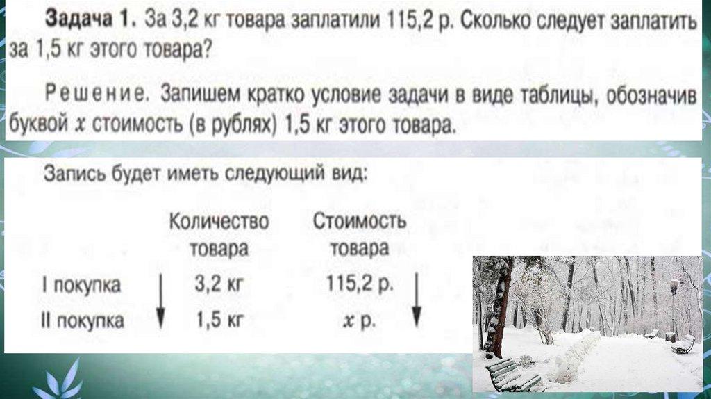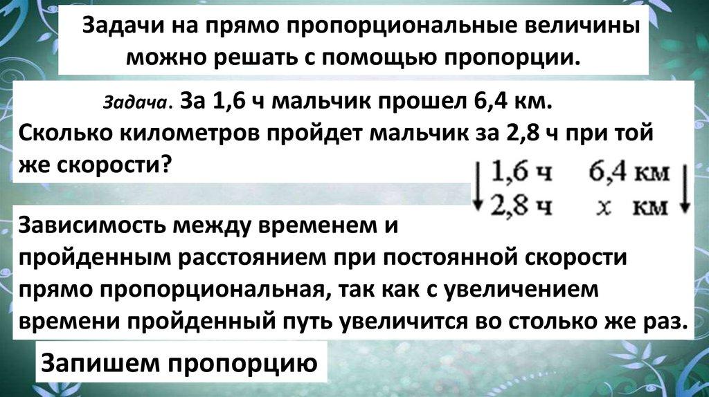 Задачи на прямо пропорциональные величиныможно решать с помощью пропорции.