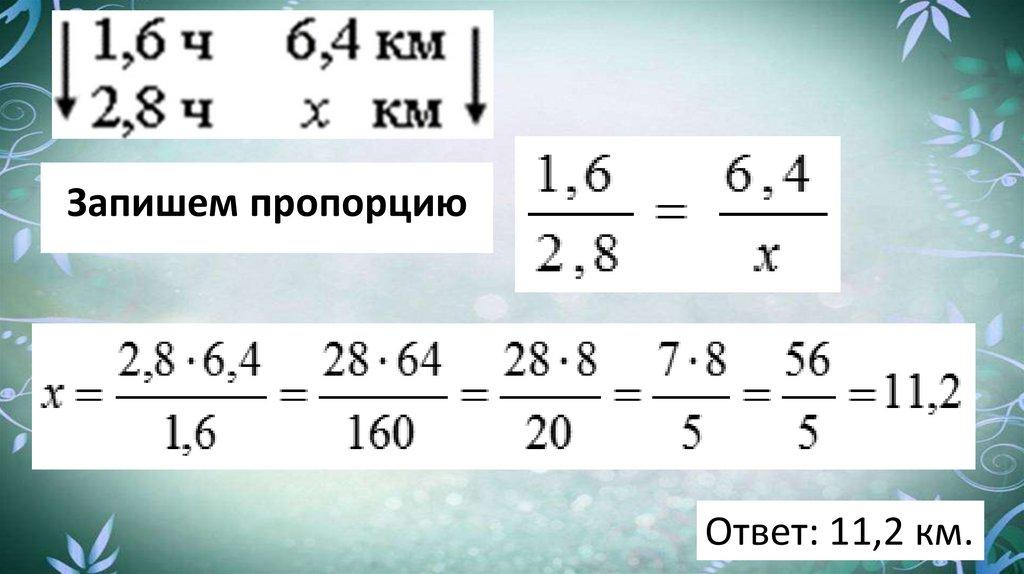 Задача. За 1,6 ч мальчик прошел 6,4 км.