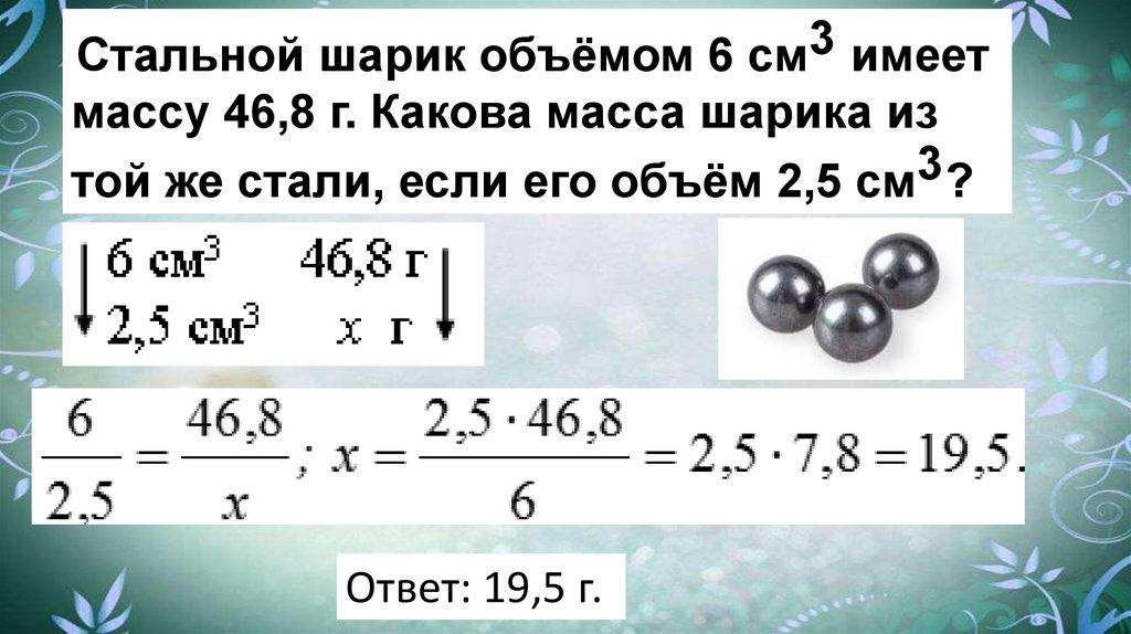 3Стальной шарик объёмом 6 см имеет