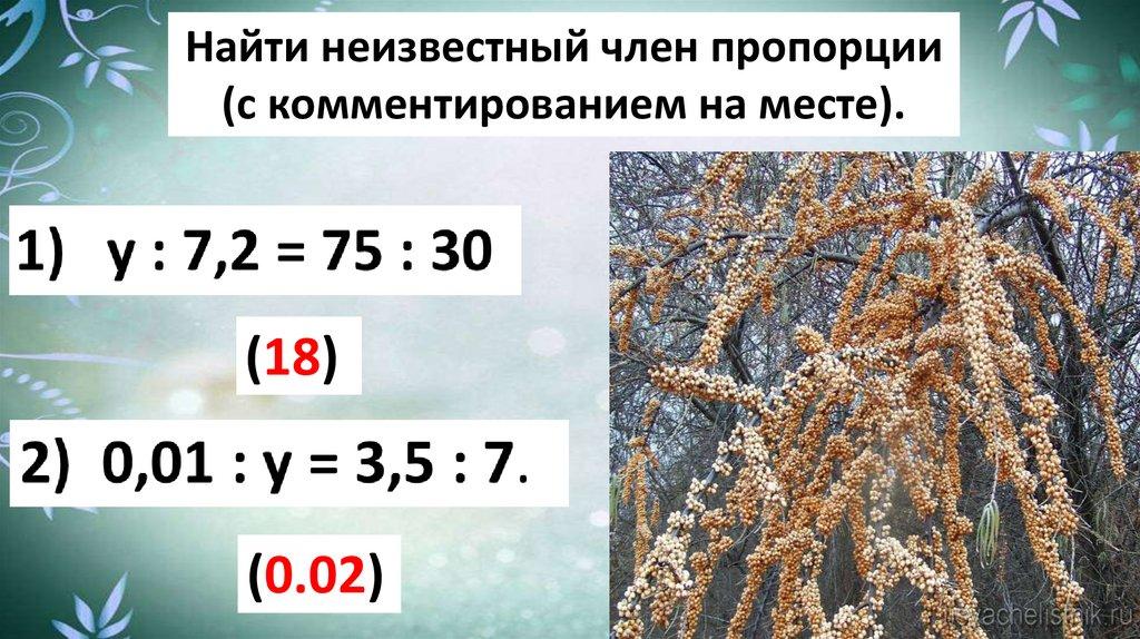 Найти неизвестный член пропорции(с комментированием на месте).