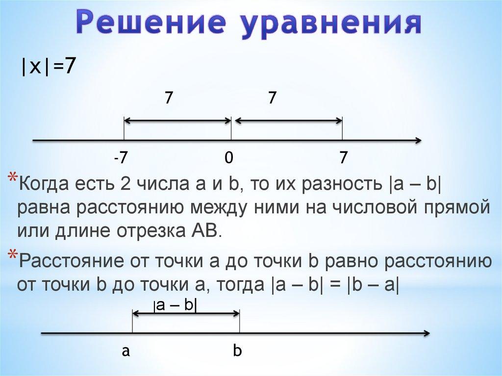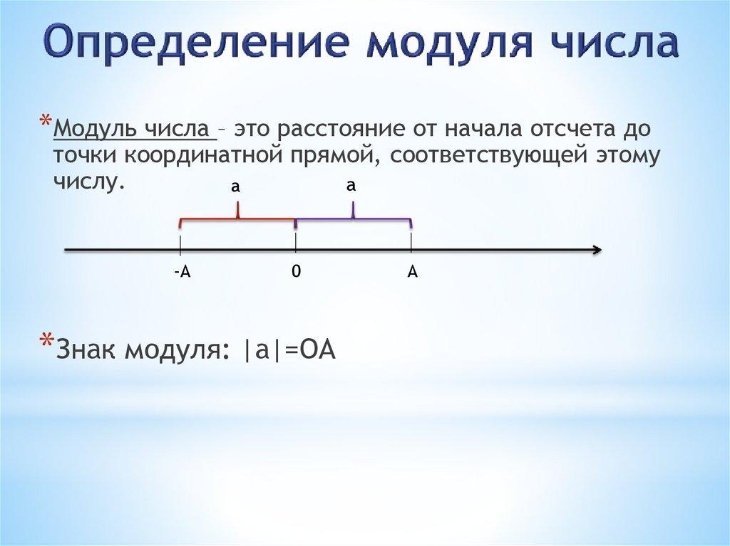 *Модуль числа – это расстояние от начала отсчета доточки координатной прямой, соответствующей этому