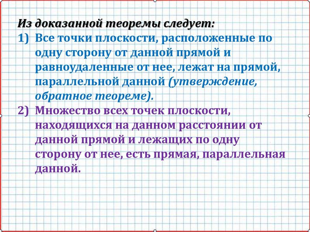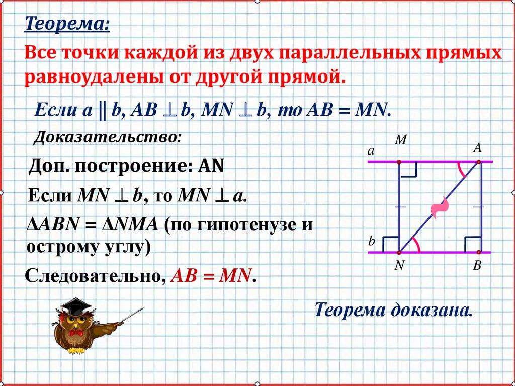 Теорема:Все точки каждой из двух параллельных прямых