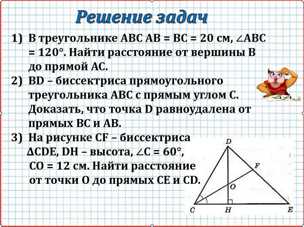 1) В треугольнике АВС АВ = ВС = 20 см, ∠АВС= 120°. Найти расстояние от вершины В