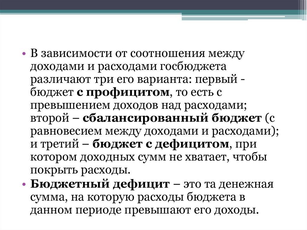 различают три его варианта: первый бюджет с профицитом, то есть с