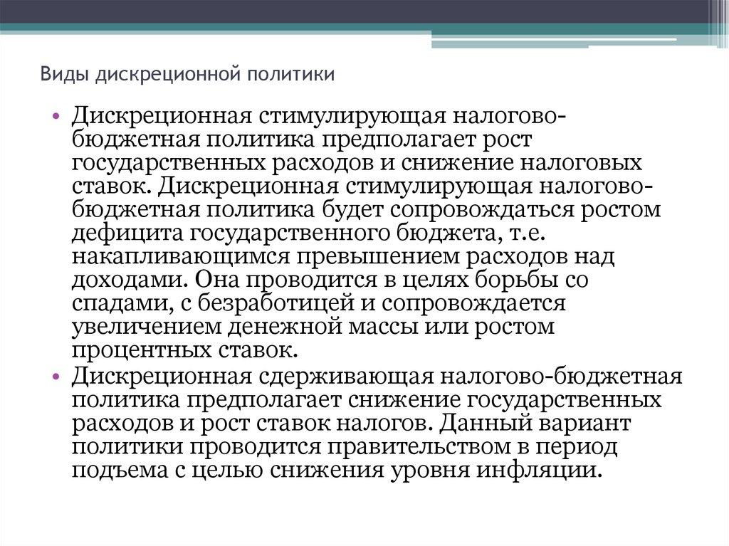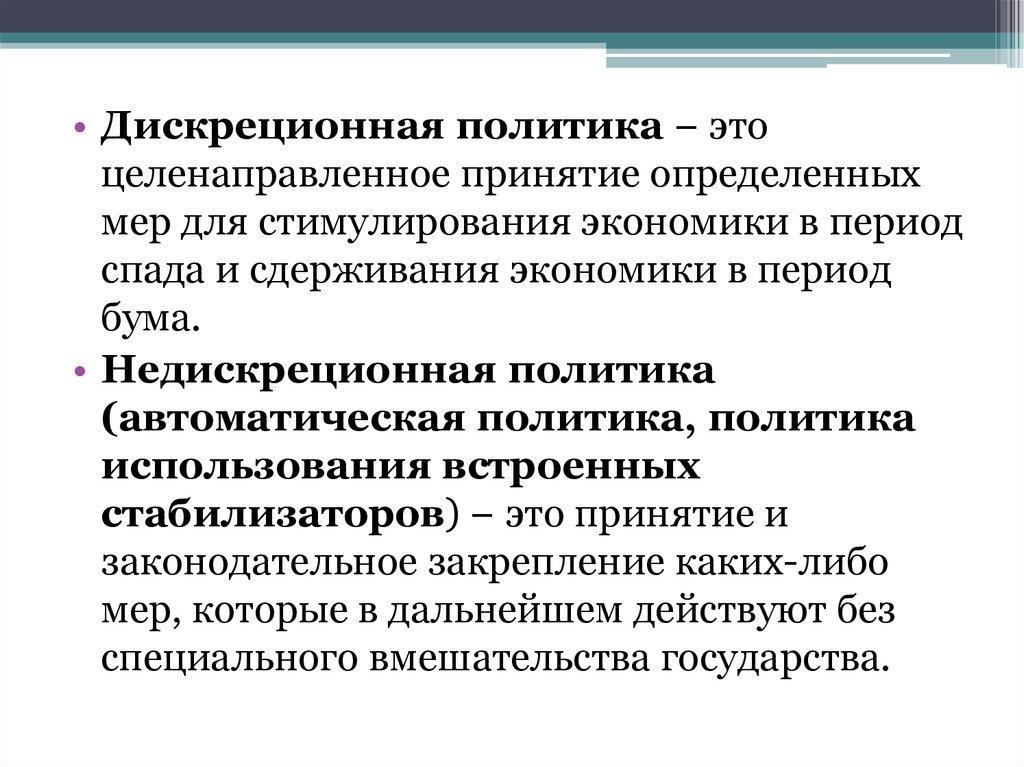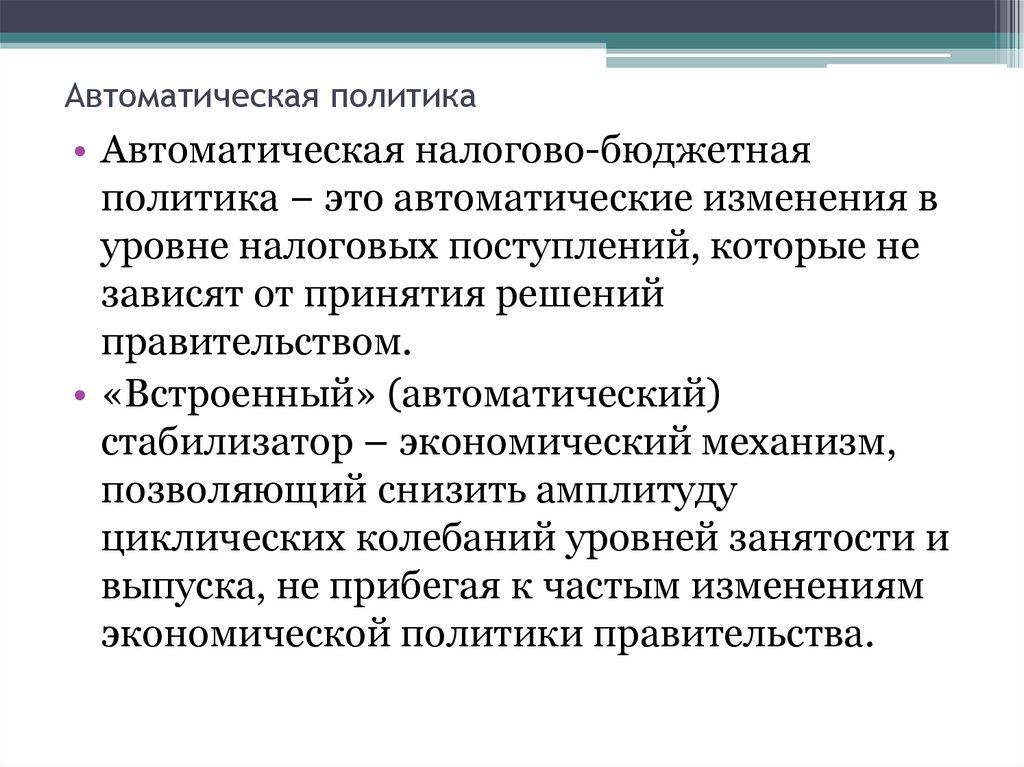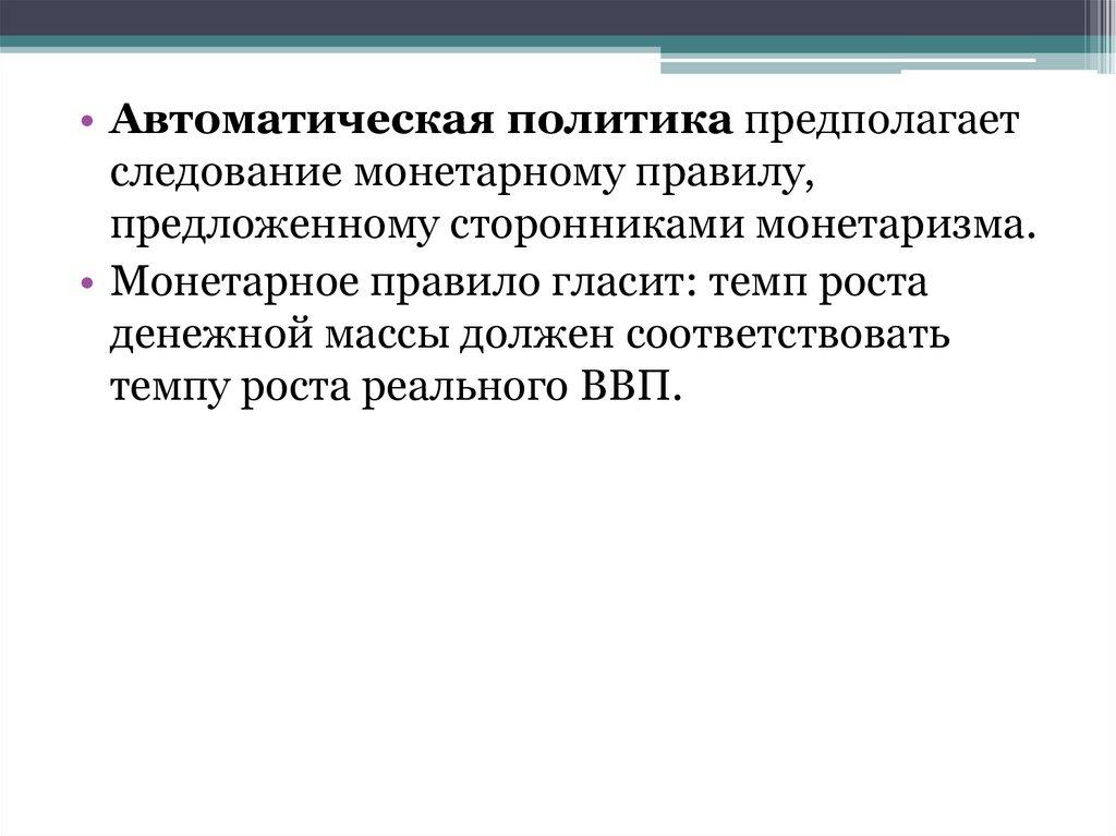 • Автоматическая политика предполагаетследование монетарному правилу,