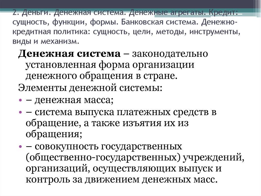 формы. Банковская система. Денежнокредитная политика: сущность, цели,