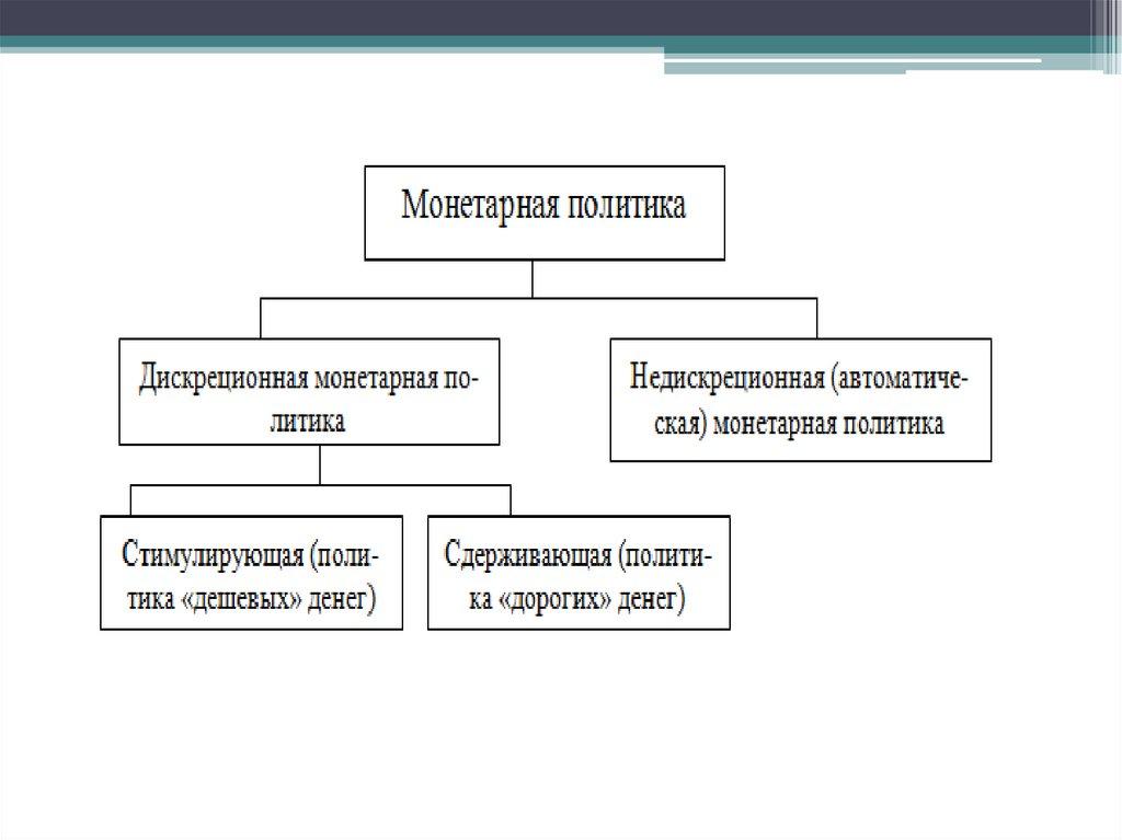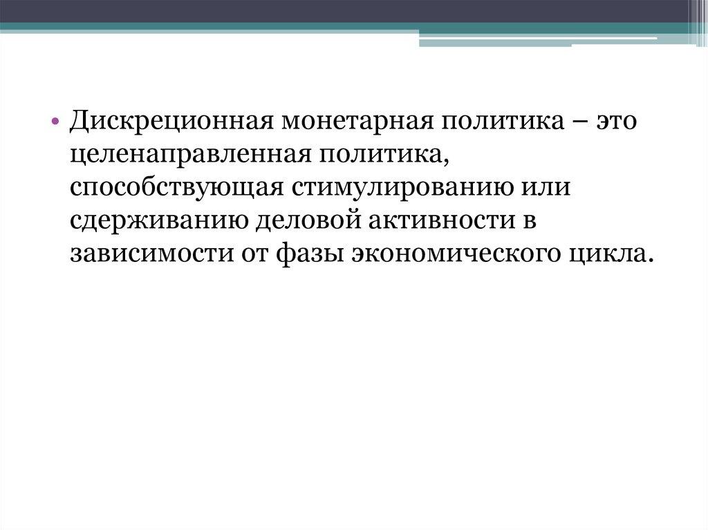 • Дискреционная монетарная политика – этоцеленаправленная политика,